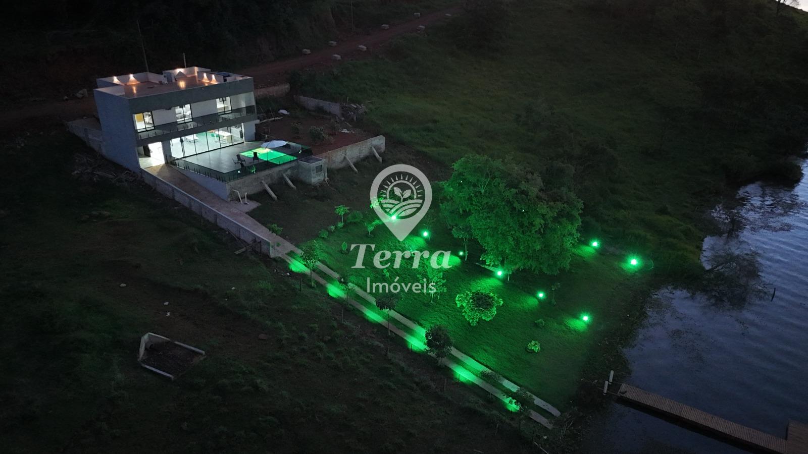 Acesso direto à água 315,67 m² de área construída Terreno de 594,66 m² + área de reserva 04 suítes + 01 quarto adicional 03 andares bem distribuídos Deck regularizado Apenas 10 km da cidade (17 min de carro) Loteamento tranquilo e familiar